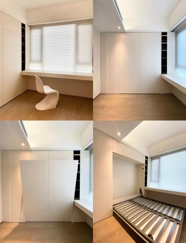 我家有三个房间,其中一间做了多功能房间,定制了衣柜和书桌还做了墨菲床,最开始是想着它可以兼衣帽间、书房和客房的功能,但是现在用了三年了,我发现它的客房功能一次都没有用到过,这个墨菲床根本没有用武之处。